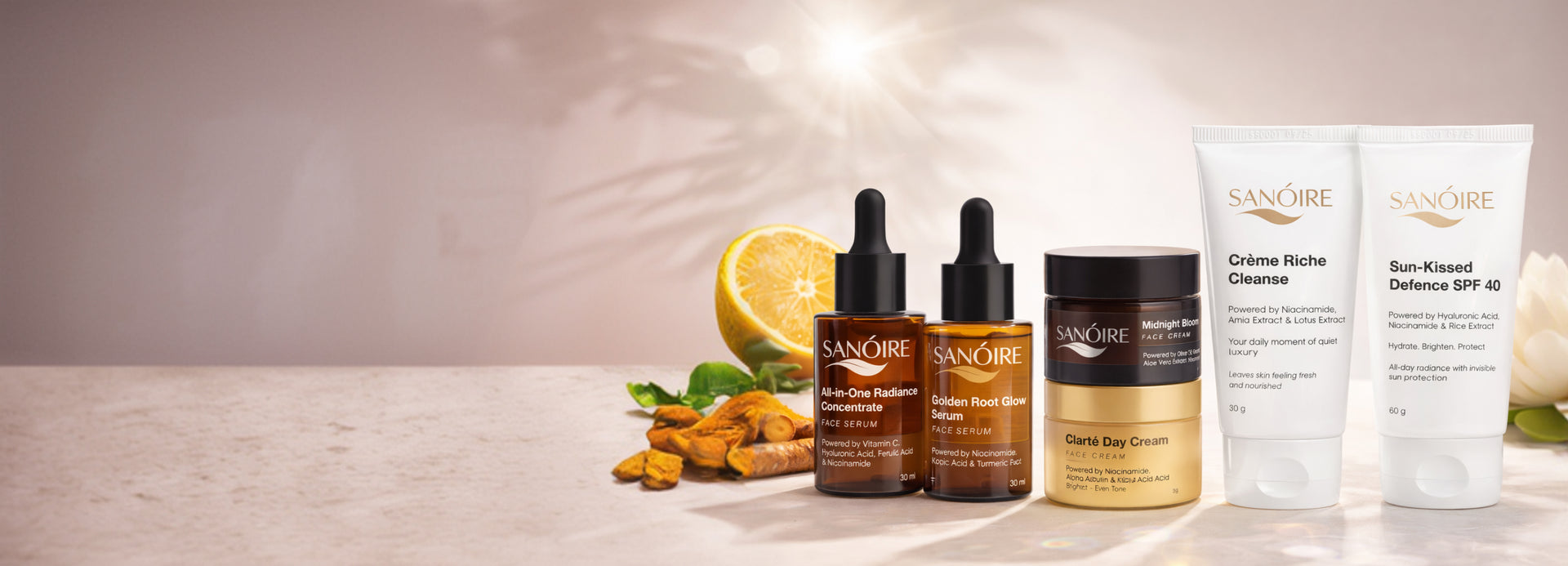 At Sanoire, we unite botanical knowledge with modern skin science to create thoughtfully formulated care. Each formula is designed to support the skin consistently—turning daily care into a considered practice.